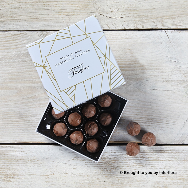 This stylish gift box contains Belgian Milk Chocolate Truffles. A stylish addition for any gift occasion. This product does not contain any artificial colours or flavours.